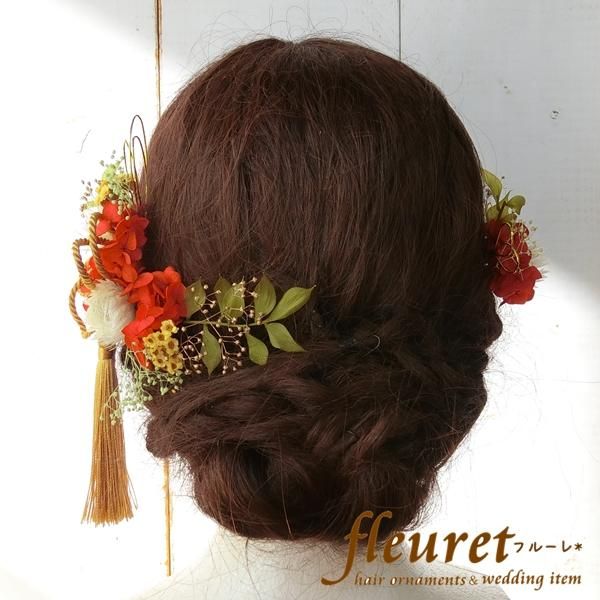【成人式・袴・色打掛におすすめ プリザーブドフラワーとドライフラワーの髪飾り】