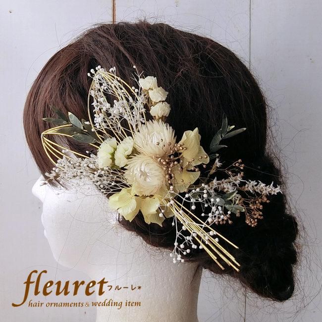 プリザーブドフラワーとドライフラワーを使用した髪飾りの2点セットです。