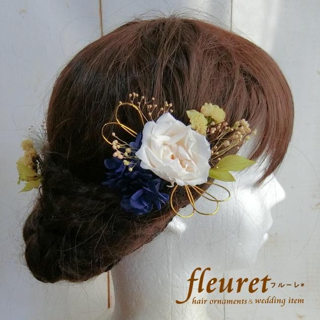 【成人式・袴・色打掛におすすめ プリザーブドフラワーとドライフラワーの髪飾り】