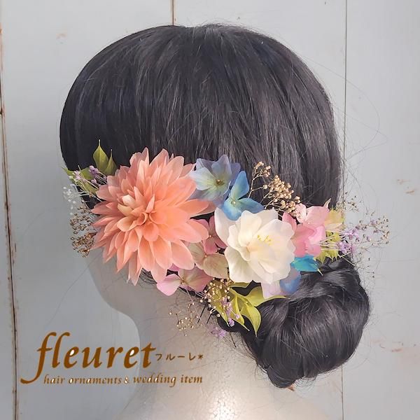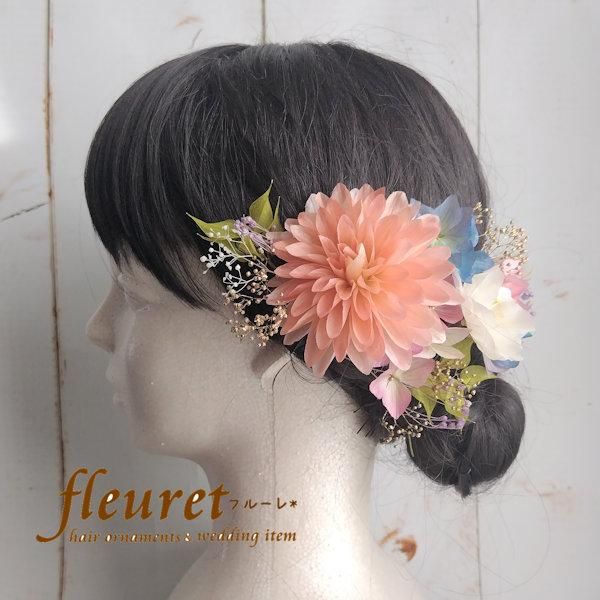 成人式での振袖・卒業式での袴・結婚式での白無垢や色打掛におすすめのダリアの髪飾り。全部で19パーツセットの髪飾りです。