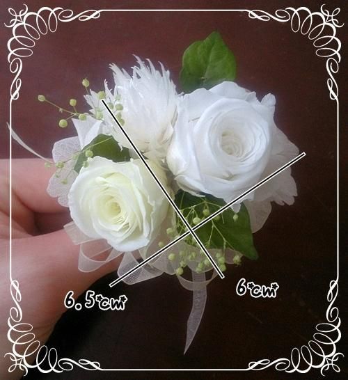 - 花材(プリザーブドフラワー):Sバラ・カスミソウ・紫陽花・ハツユキカズラ・シルバーデージー(ドライフラワー)